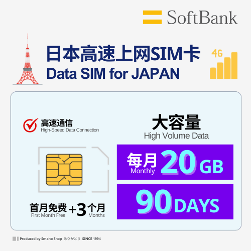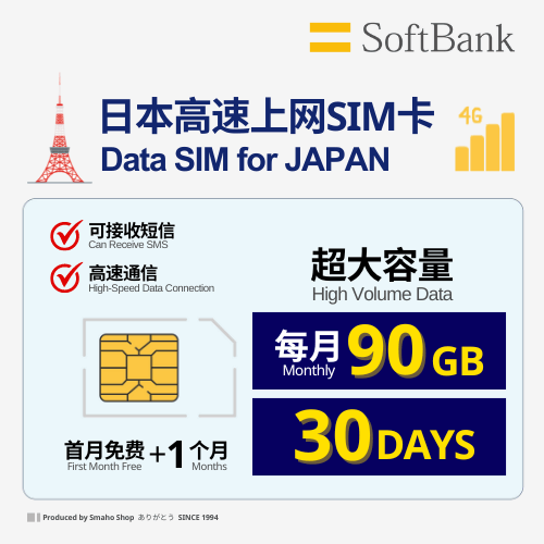 [90GB] Softbank 高速流量卡 (可接收短信)