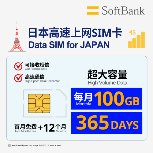 [100GB] Softbank 高速流量卡 (可接收短信)